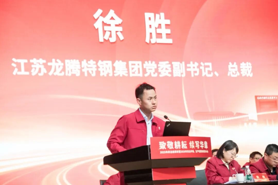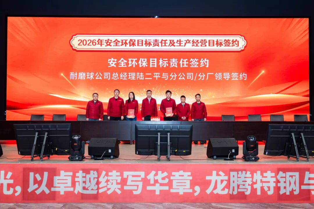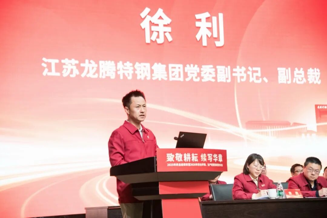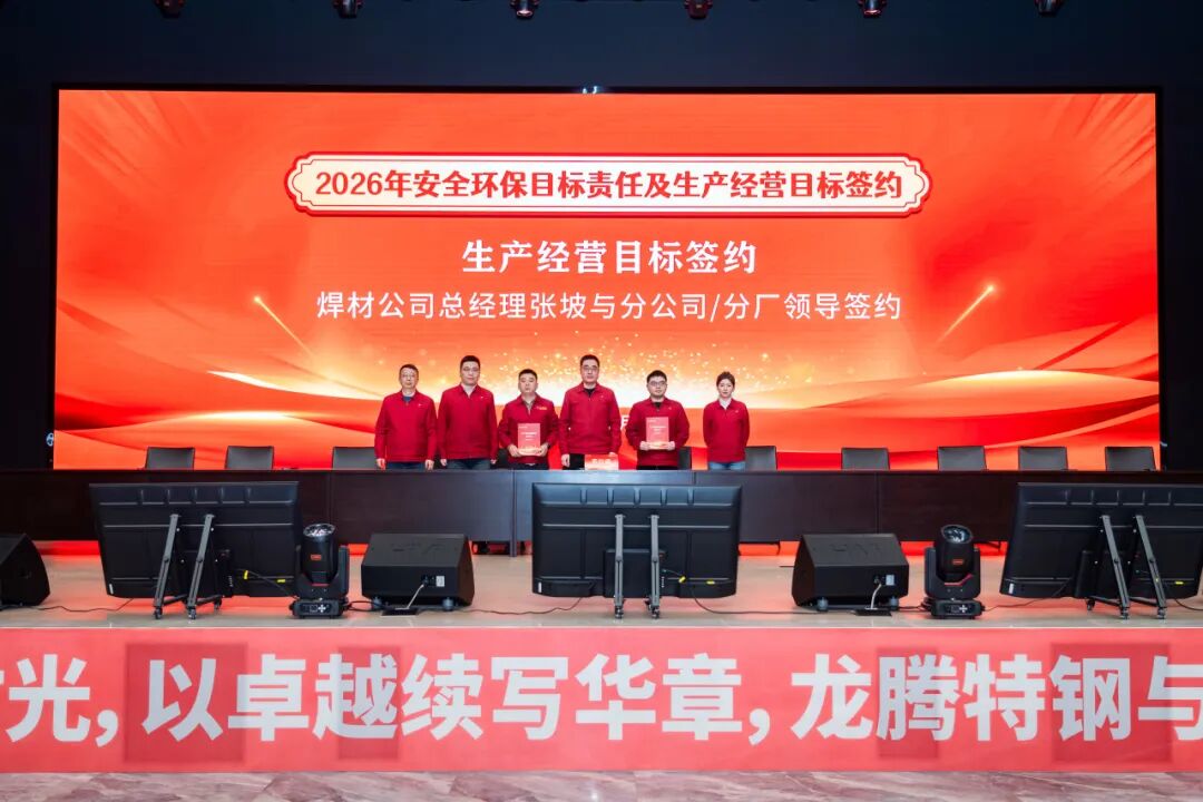 2026年1月28日,江蘇龍騰特鋼集團(tuán)隆重召開2025年工作總結(jié)表彰大會(huì)暨2026年安全環(huán)保、生產(chǎn)經(jīng)營(yíng)目標(biāo)簽約會(huì)議。大會(huì)全面總結(jié)了公司2025年度取得的各項(xiàng)成績(jī),表彰了工作中涌現(xiàn)出的各類先進(jìn),并全面部署了2026年度各項(xiàng)目標(biāo)任務(wù)。