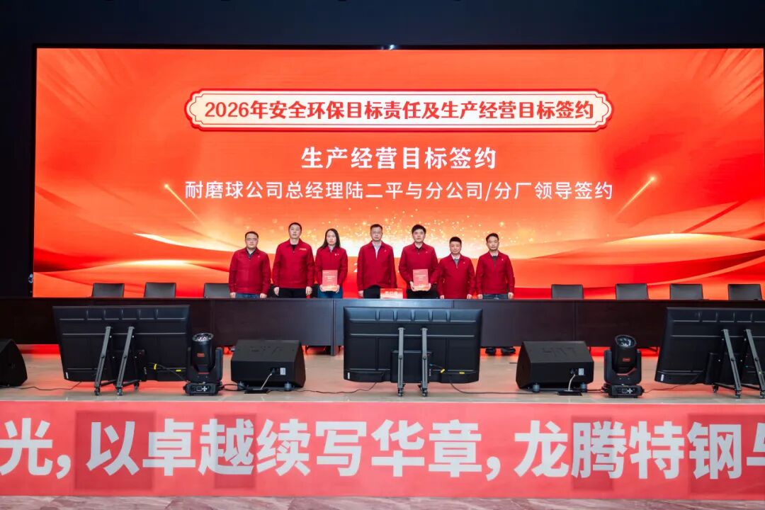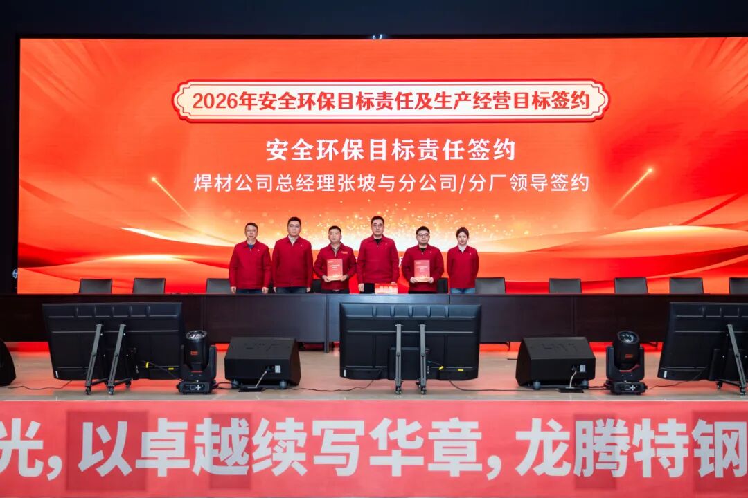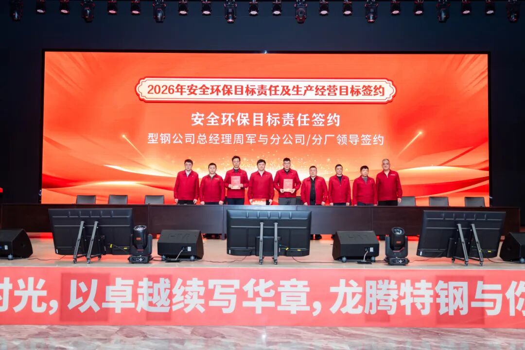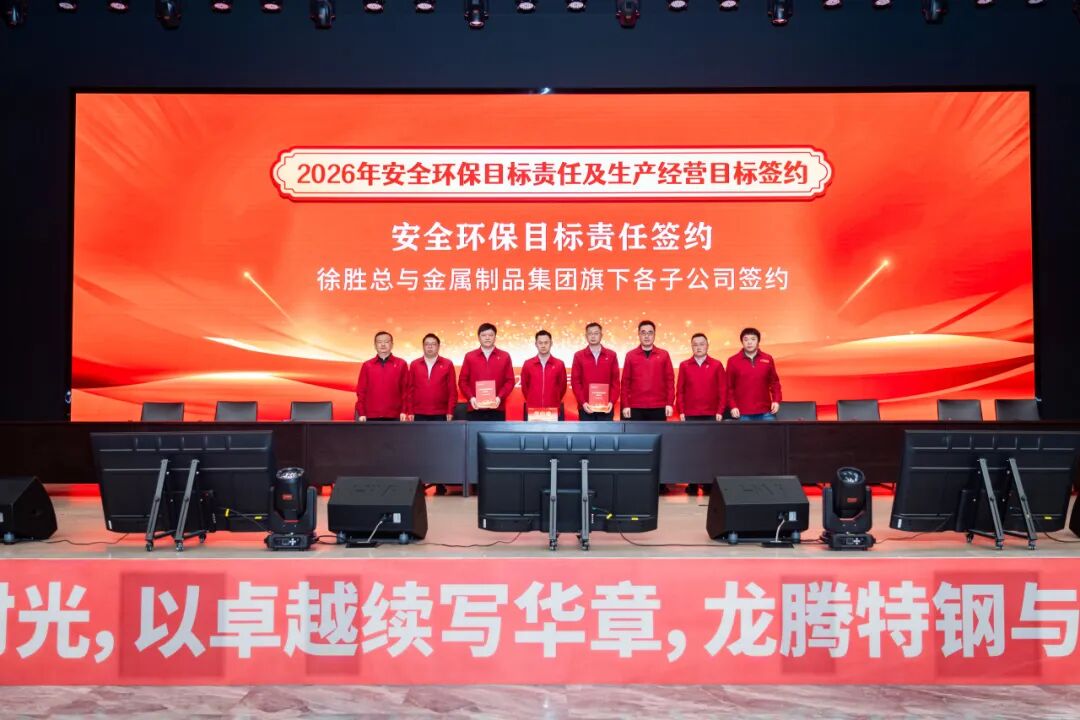 2026年1月28日,江蘇龍騰特鋼集團(tuán)隆重召開2025年工作總結(jié)表彰大會(huì)暨2026年安全環(huán)保、生產(chǎn)經(jīng)營(yíng)目標(biāo)簽約會(huì)議。大會(huì)全面總結(jié)了公司2025年度取得的各項(xiàng)成績(jī),表彰了工作中涌現(xiàn)出的各類先進(jìn),并全面部署了2026年度各項(xiàng)目標(biāo)任務(wù)。